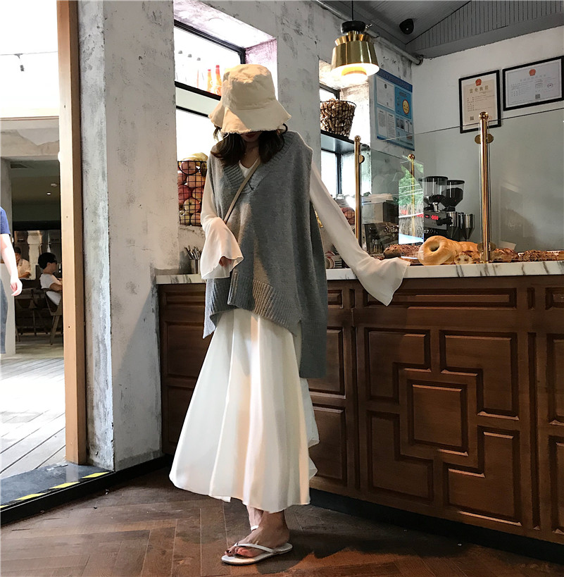 / 新款韓版秋季上衣女外穿復古chic時尚寬松V領前短后長馬甲針織衫