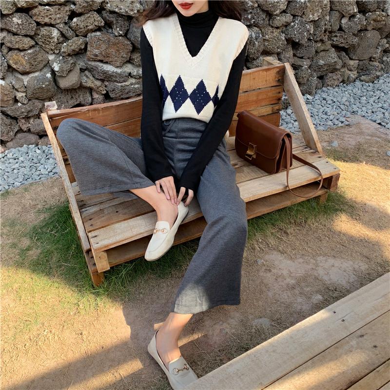 女神套裝秋冬新款V領馬甲針織背心女+高領磨毛打底衫+百搭闊腿褲