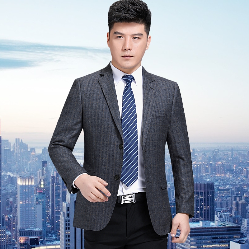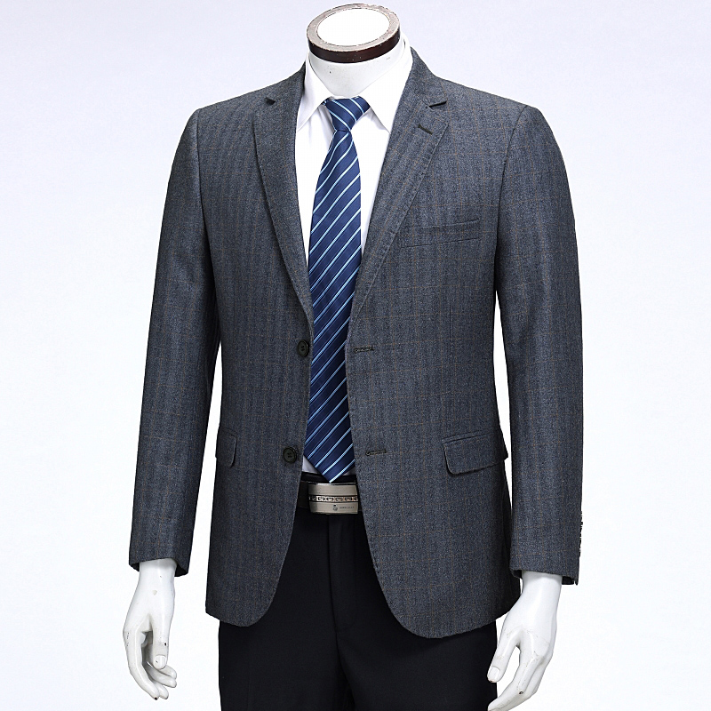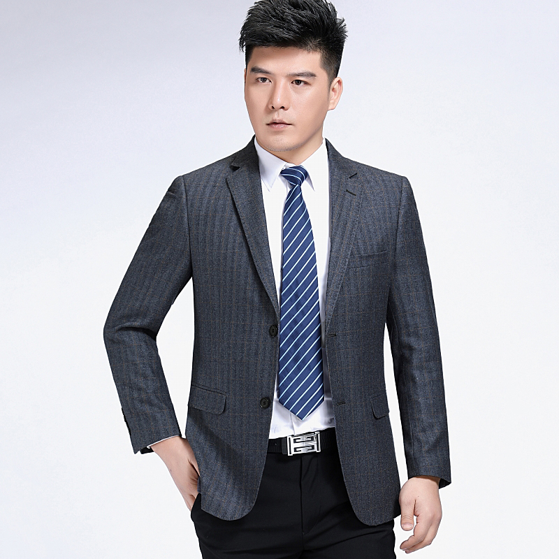 / 秋款品牌中年男士修身格子西服商務休閑男裝羊毛單件西裝外套上衣