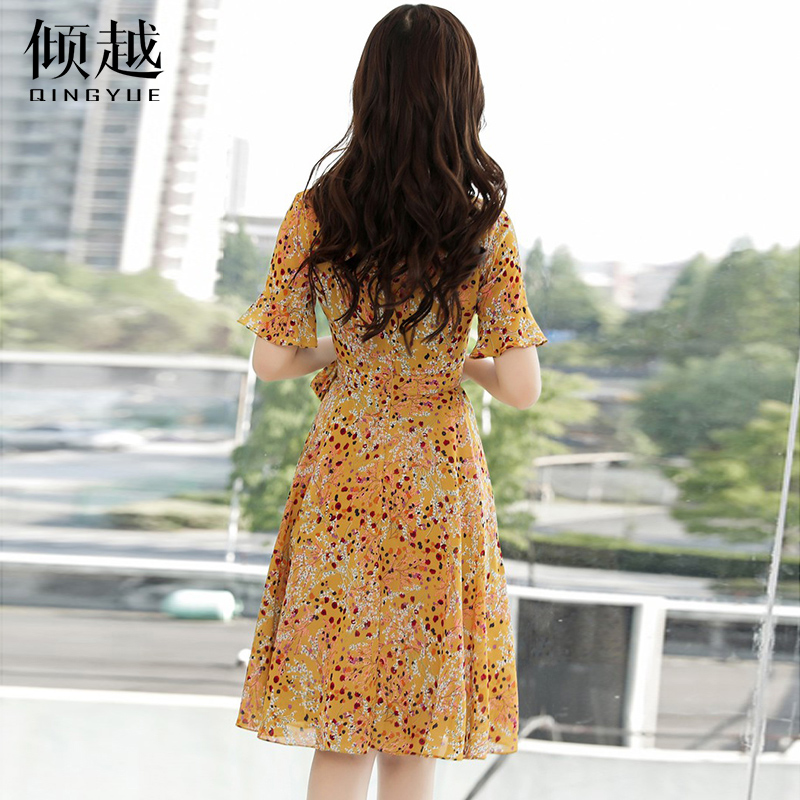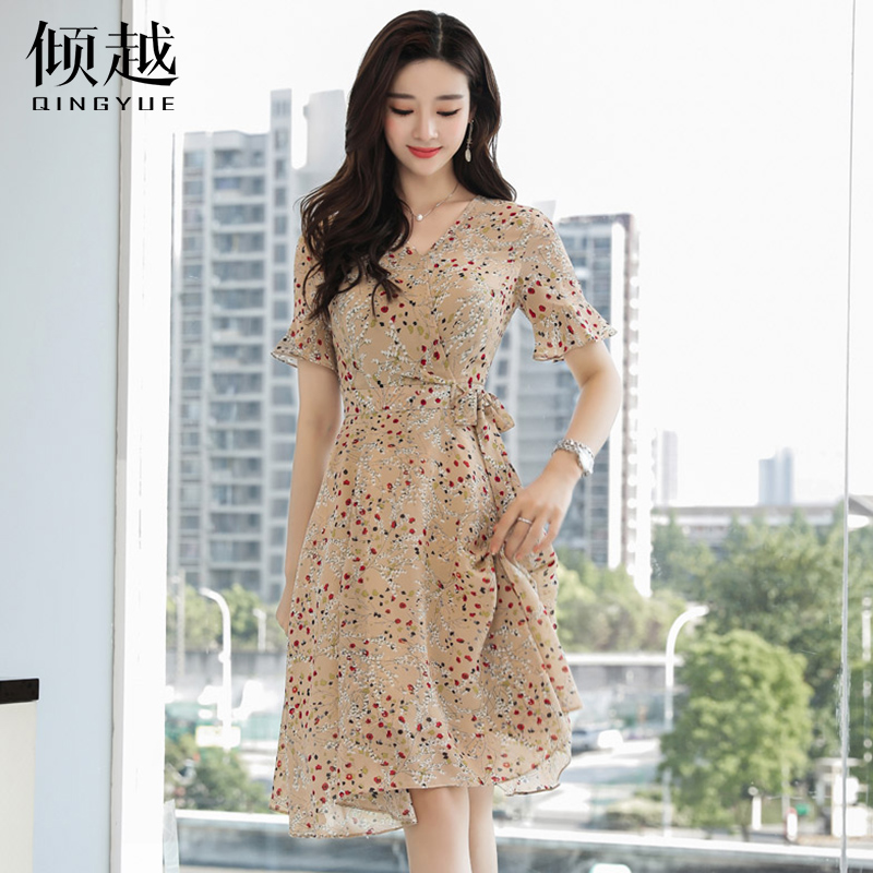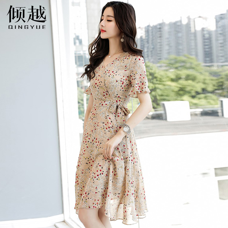 / 2017夏季新款碎花裙海邊度假波西米亞雪紡沙灘裙中長款V領連衣裙