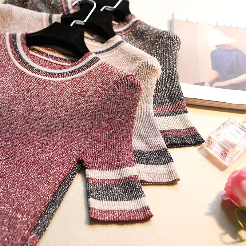 亮絲t恤女新款夏季薄款打底衫潮修身韓版短袖針織短袖女夏