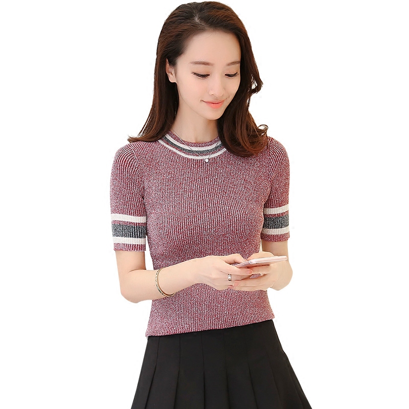 / 亮絲t恤女新款夏季薄款打底衫潮修身韓版短袖針織短袖女夏