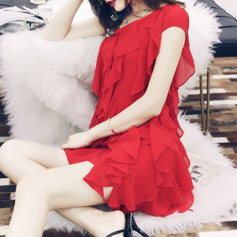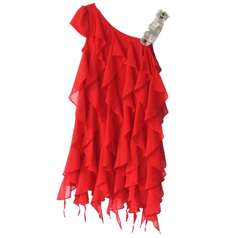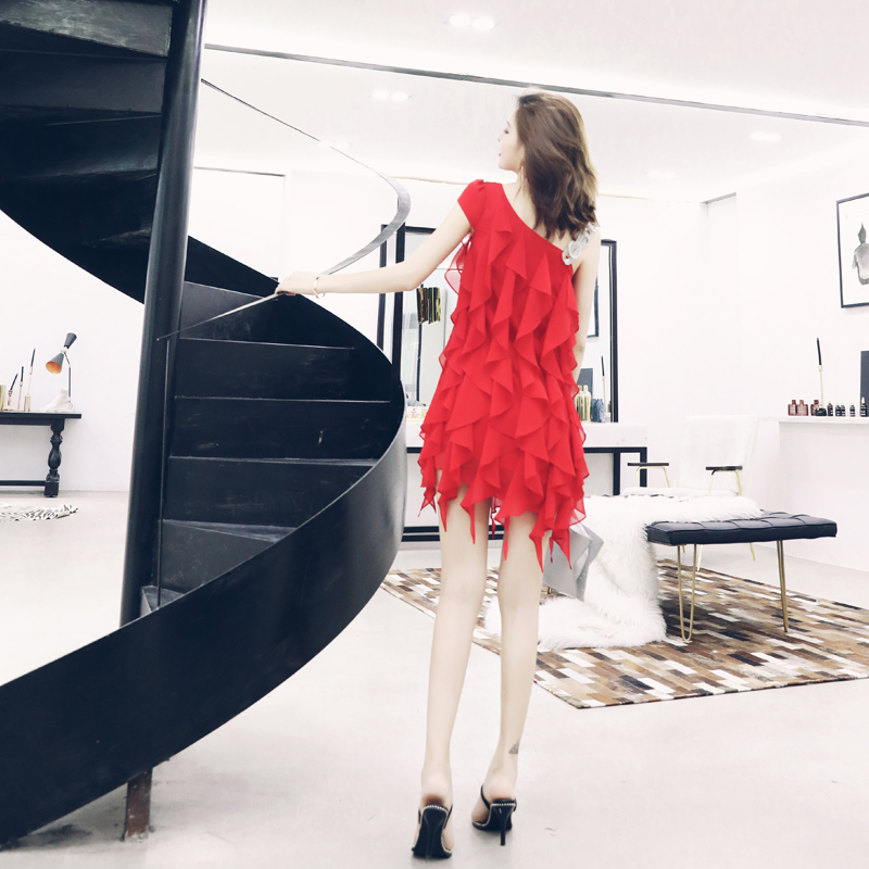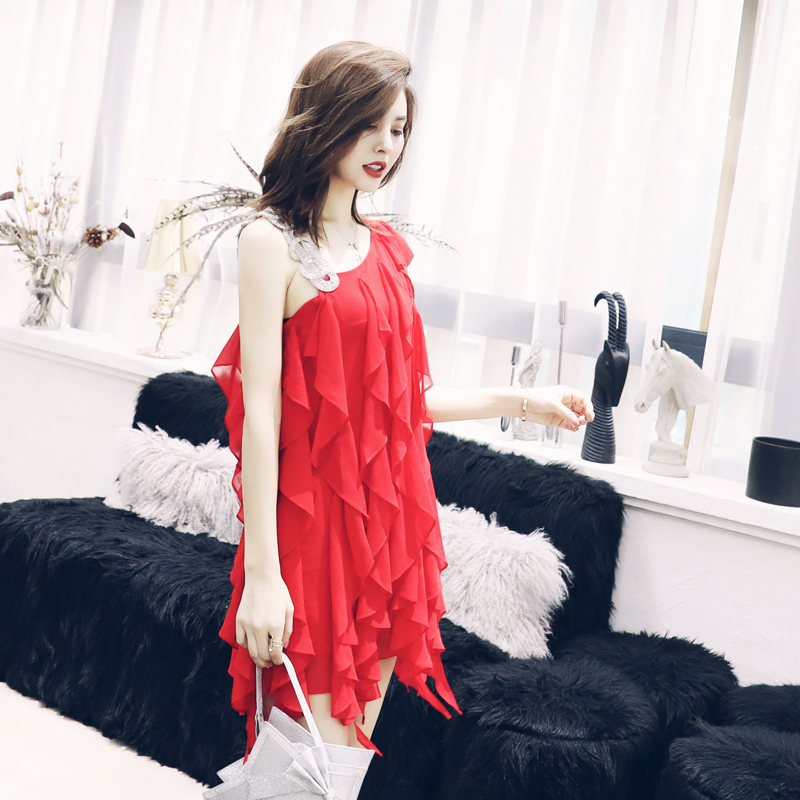 S秀2018夏季新款甜美公主風流蘇拼接單肩連衣裙氣質不規則裙子