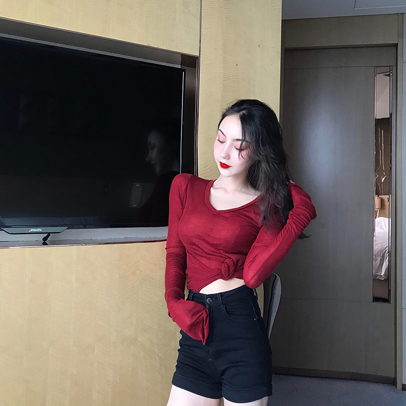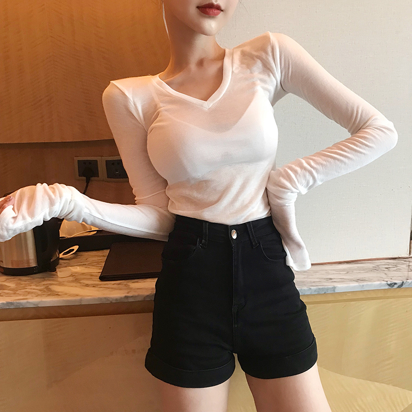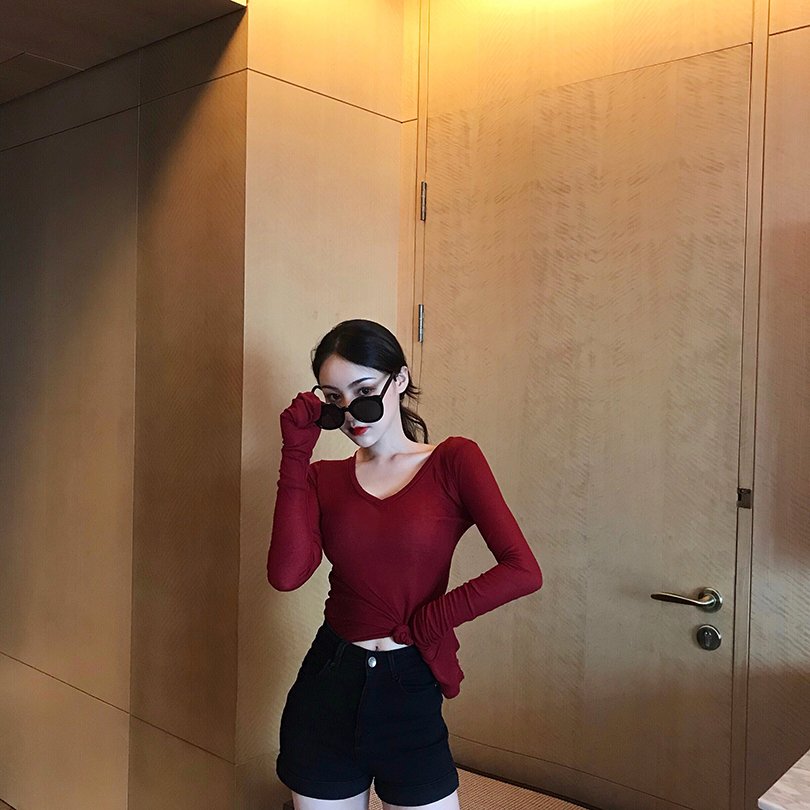 2018秋裝新款韓國chic風薄款港味復古顯瘦上衣時尚針織長袖T恤女