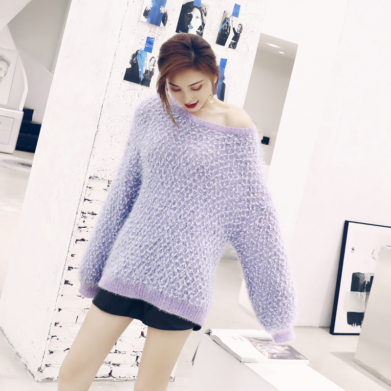 / 2018秋裝新款慵懶風寬松長袖針織衫上衣毛衣皮短褲網紅氣質套裝潮