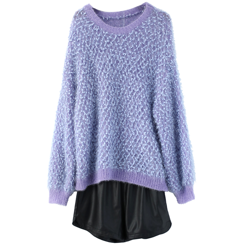 2018秋裝新款慵懶風寬松長袖針織衫上衣毛衣皮短褲網紅氣質套裝潮