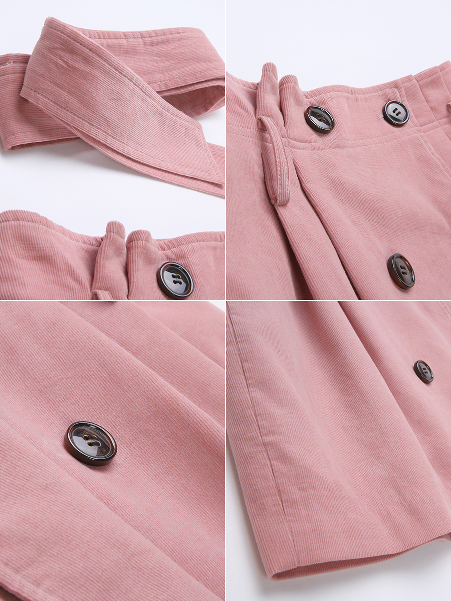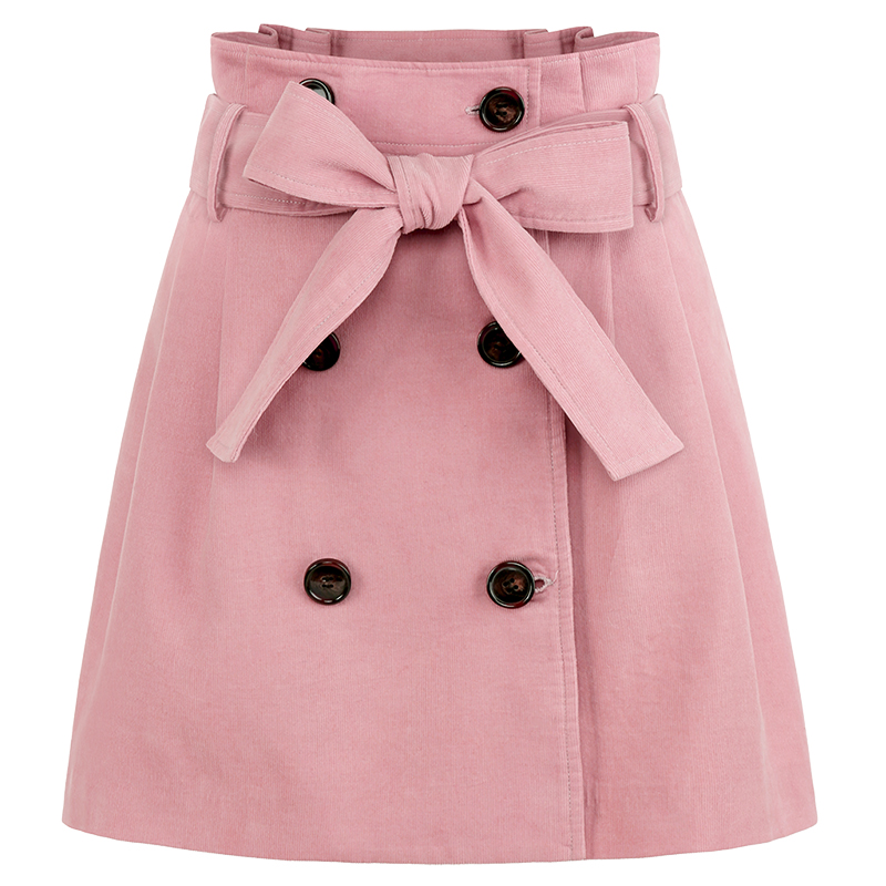MG小象高腰半身裙秋冬女2018新款粉色chic短裙蝴蝶結系帶a字裙子