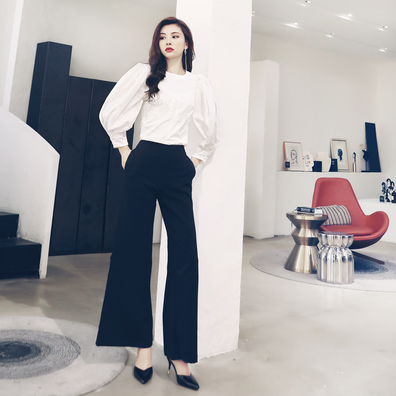/ 秋裝垂感針織闊腿褲2018新款女神休閑套裝女夏時尚長袖上衣兩件套