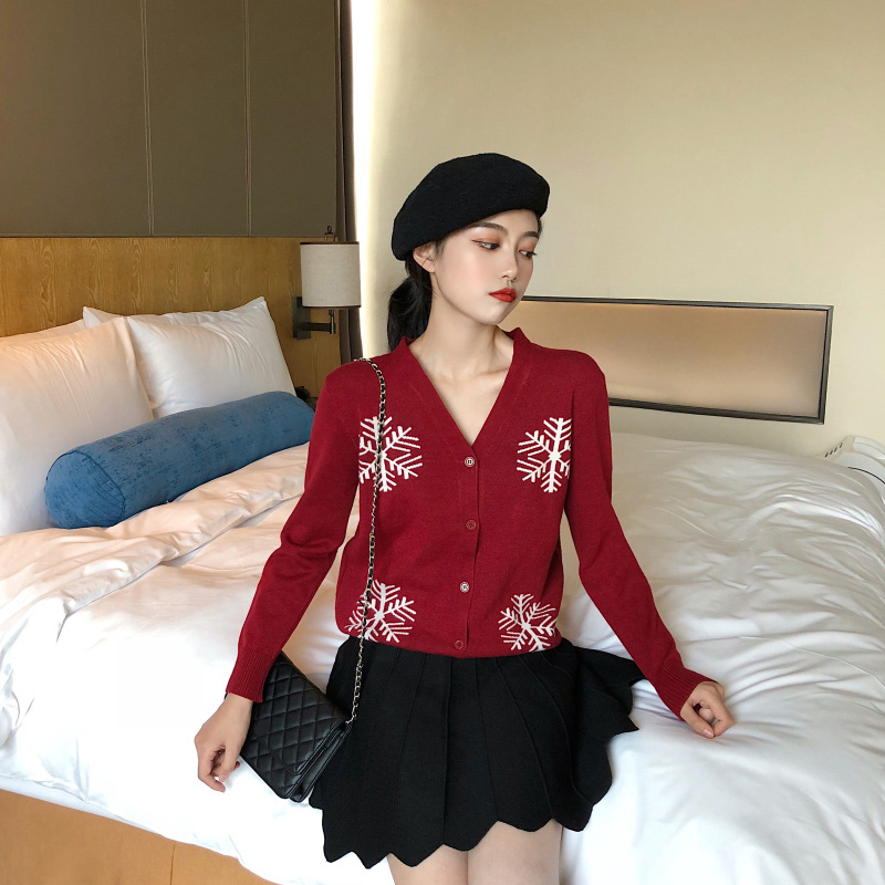 / 2018秋冬新款韓版chic修身百搭雪花針織衫開衫高腰半身裙時尚套裝