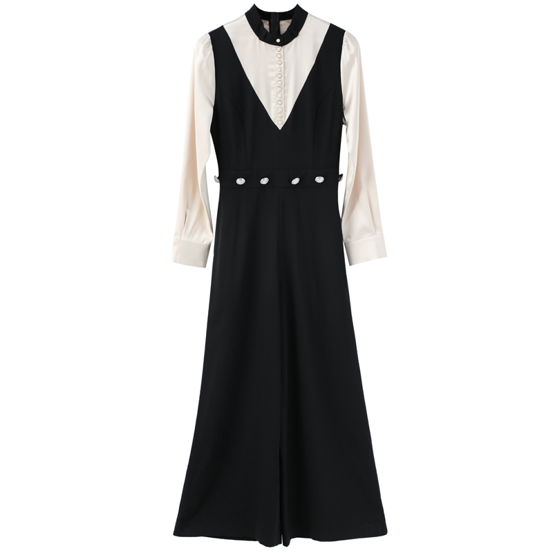 2018新款秋裝兩件女韓版長袖上衣顯瘦高腰背帶連體闊腿褲時髦套裝