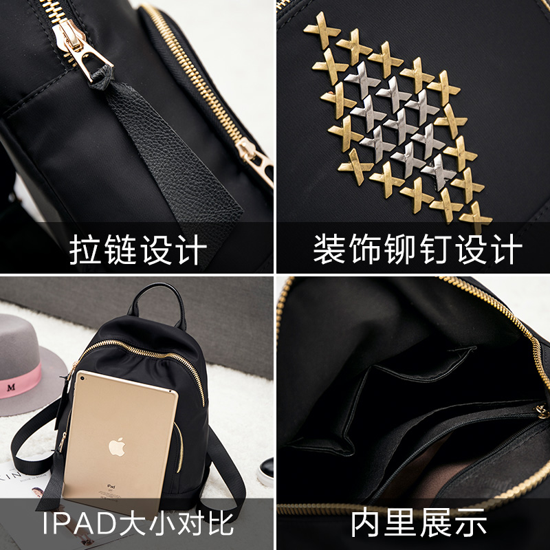 鉚釘雙肩包女韓版時尚百搭牛津帆布個性包包新款女士背包女潮