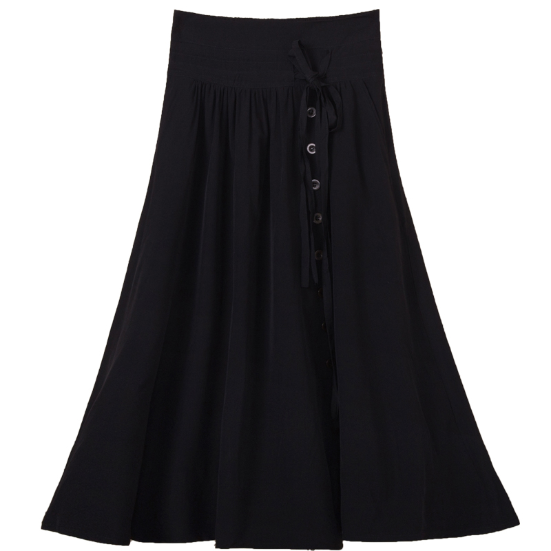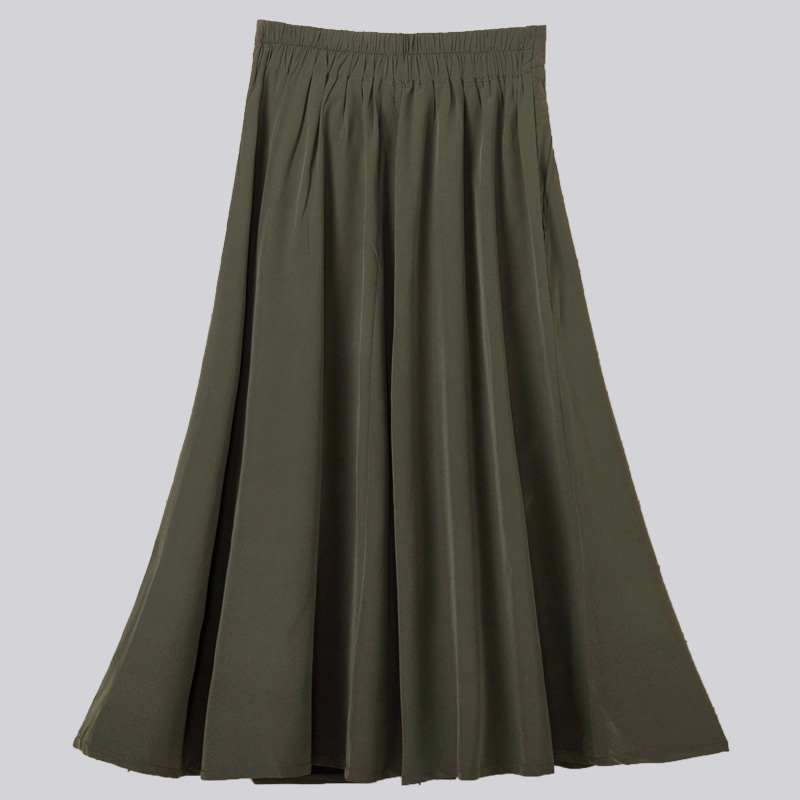 / 年夏裝新款純色系帶A字半身裙大裙擺 韓版薄款百褶松緊腰長裙