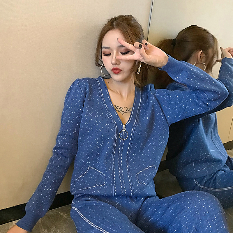 / 2018秋裝新款韓版港風時尚氣質休閑運動套裝寬松長袖上衣高腰長褲