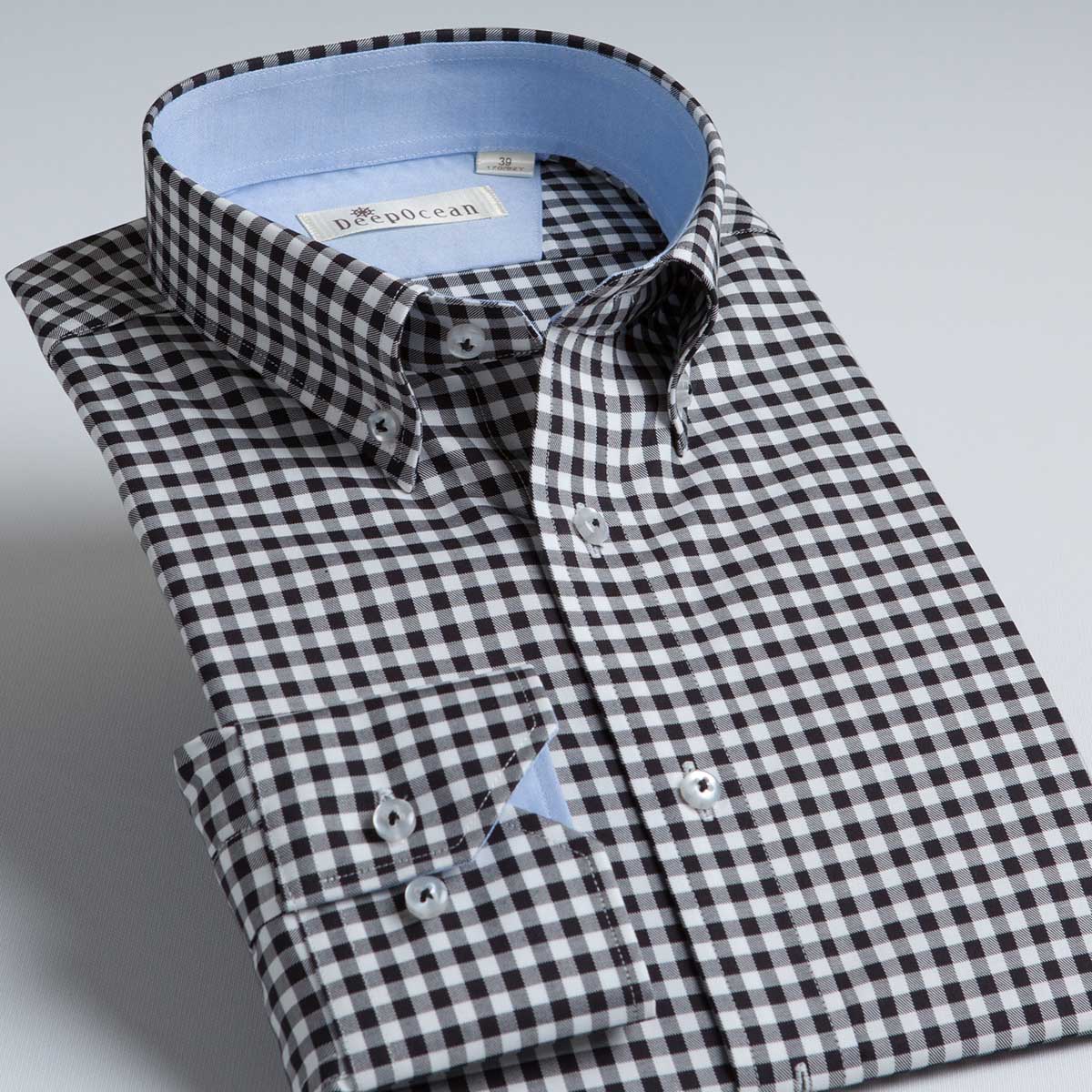 深海格子襯衫襯衣男長袖釘扣領時尚商務修身純棉免燙秋裝男裝