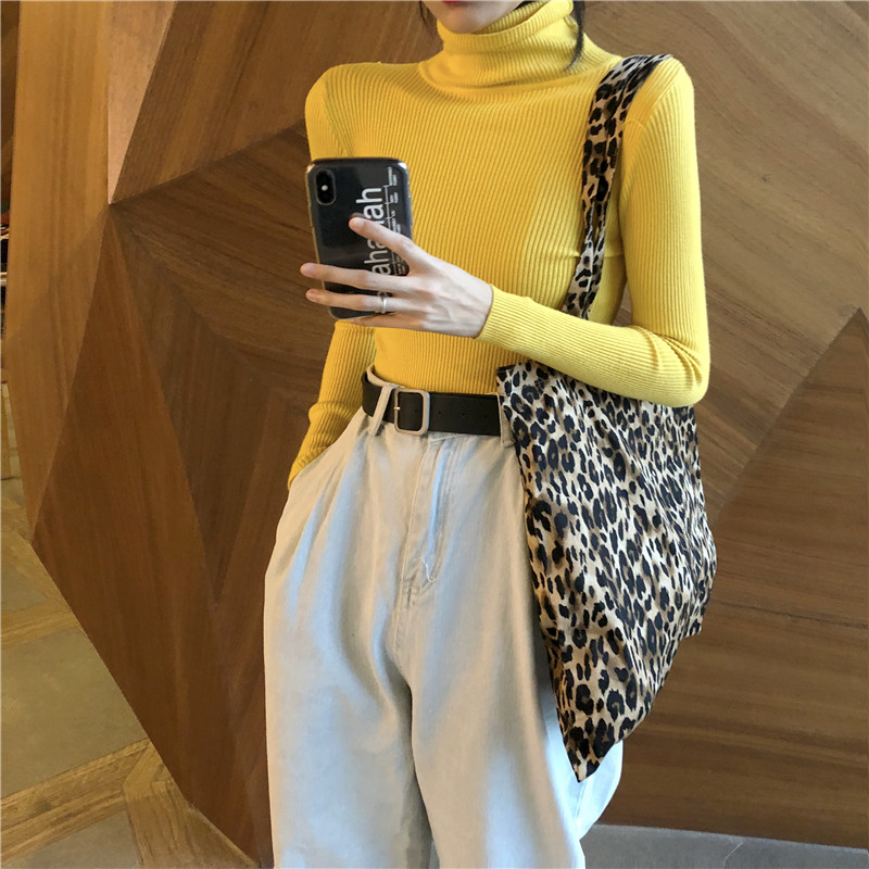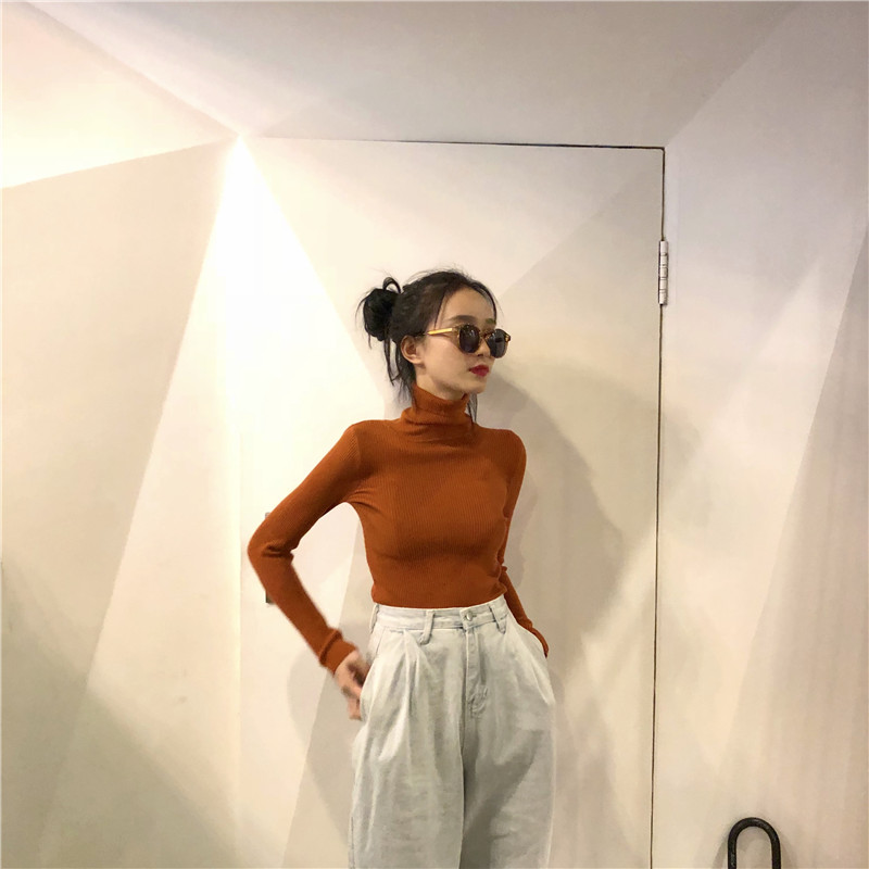 / 秋冬新品chic百搭純色高領顯瘦彈力修身毛針織打底衫內搭毛衣女潮
