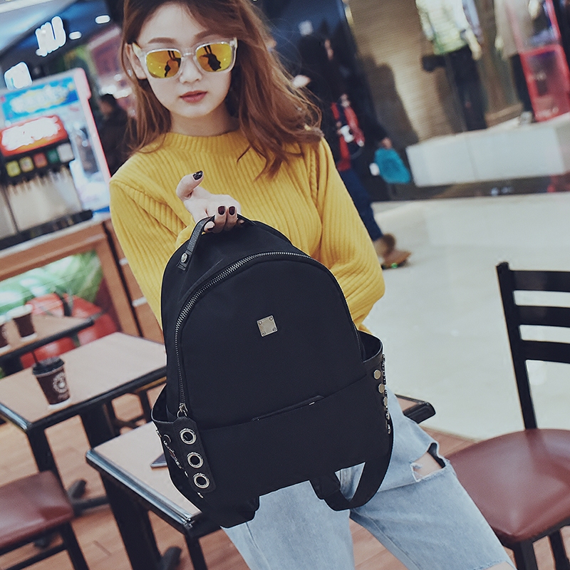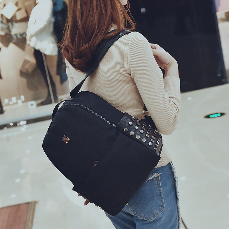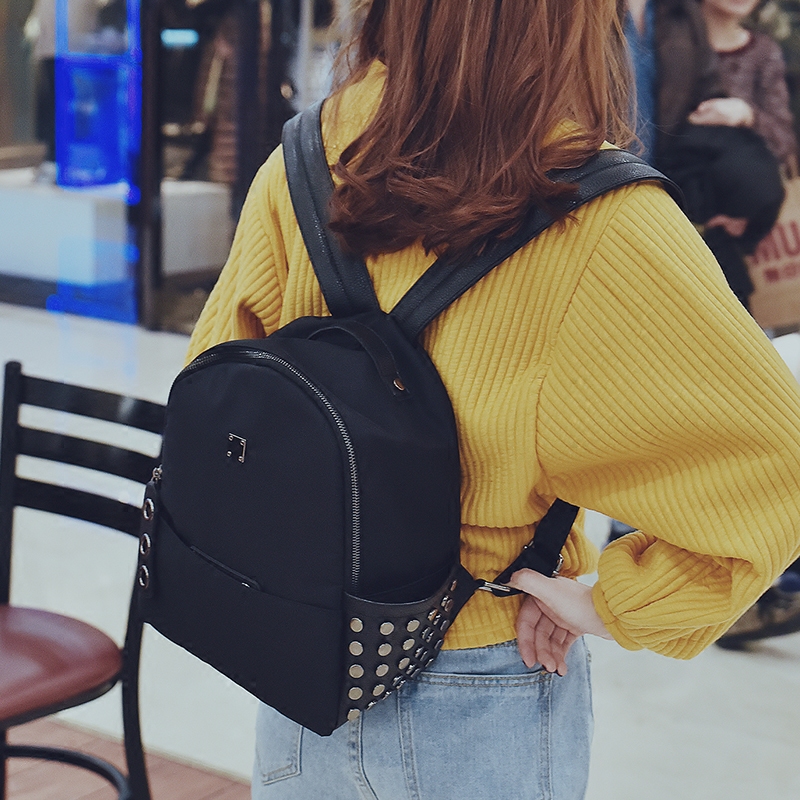 包包新款潮牛津布雙肩包女韓版學院風尼龍背包個性鉚釘小書包