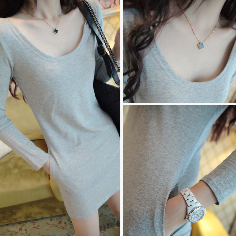 / 韓版中長款內搭打底衫學生純色長袖T恤女春裝上衣顯瘦修身體恤裙