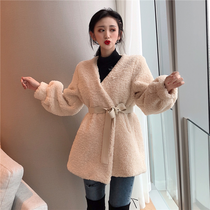 / 秋冬復古chic時尚寬松顯瘦百搭新款開衫簡約大牌蝴蝶結系帶毛外套