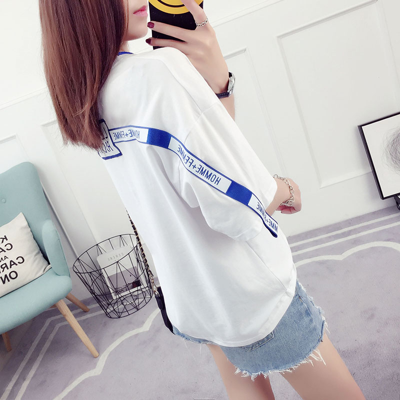 / 夏裝新款韓版學生潮百搭衣服女夏季短袖寬松t恤破洞時尚上衣