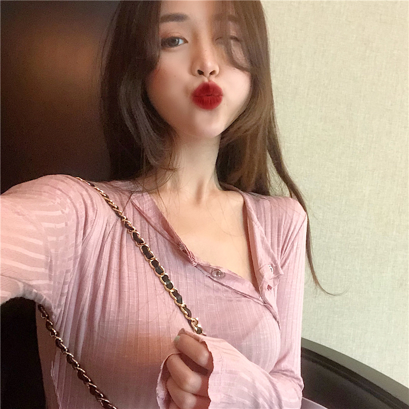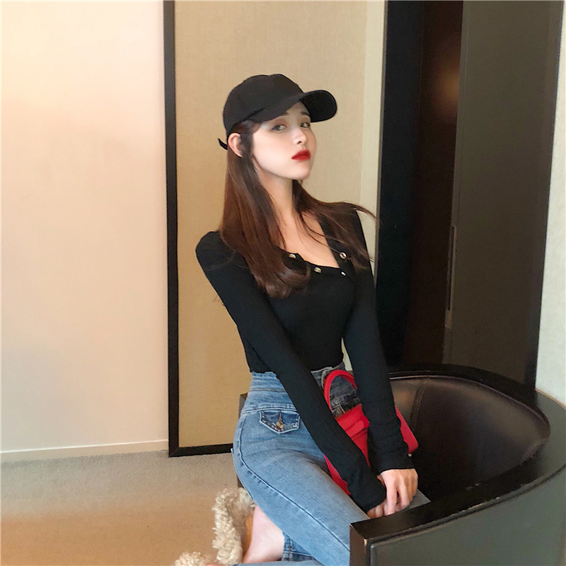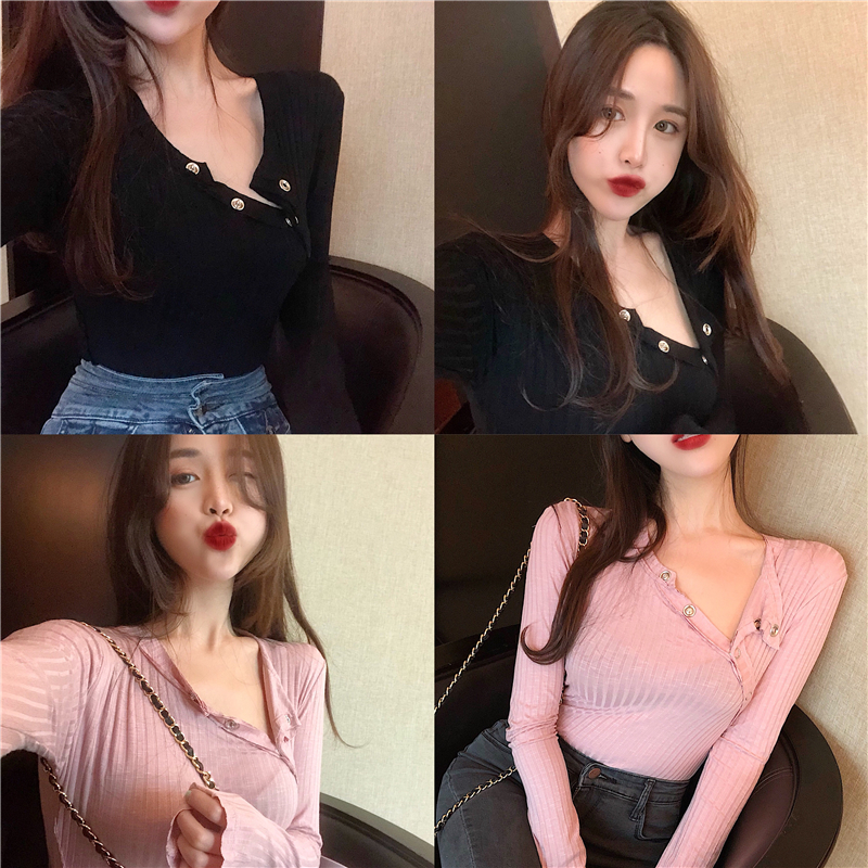 / 百搭修身打底衫女裝新款韓版顯瘦不規則長袖T恤chic慵懶風上衣潮