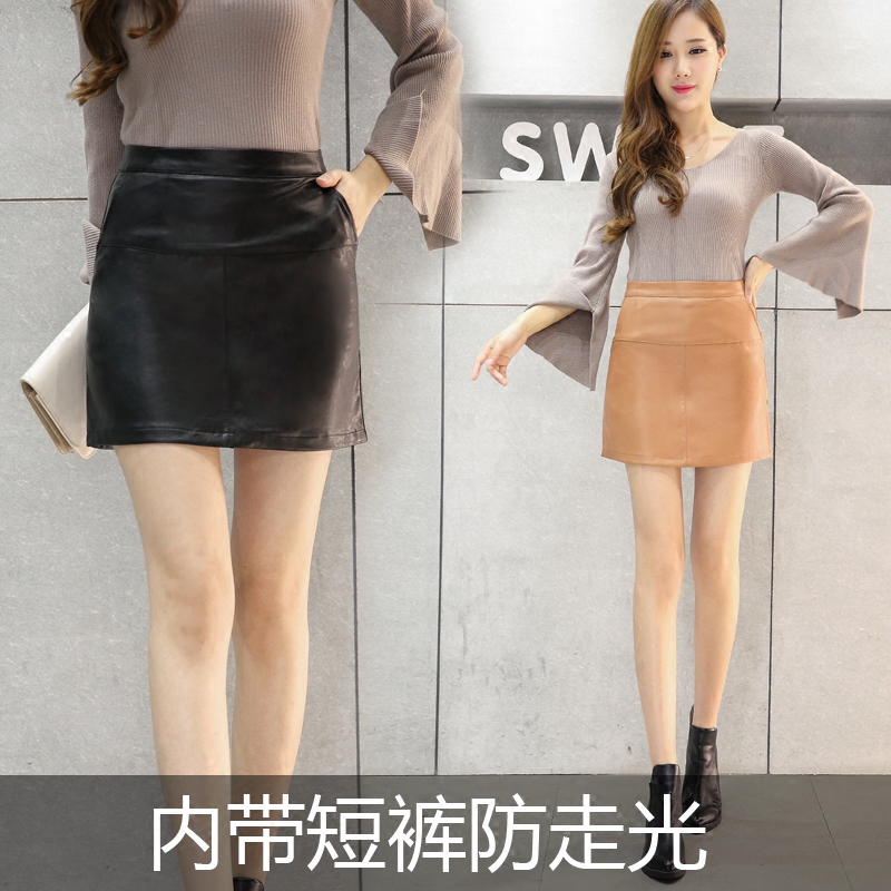 / PU皮高腰A字裙女包臀半身裙顯瘦一步裙秋季短裙半裙皮裙裙子包裙