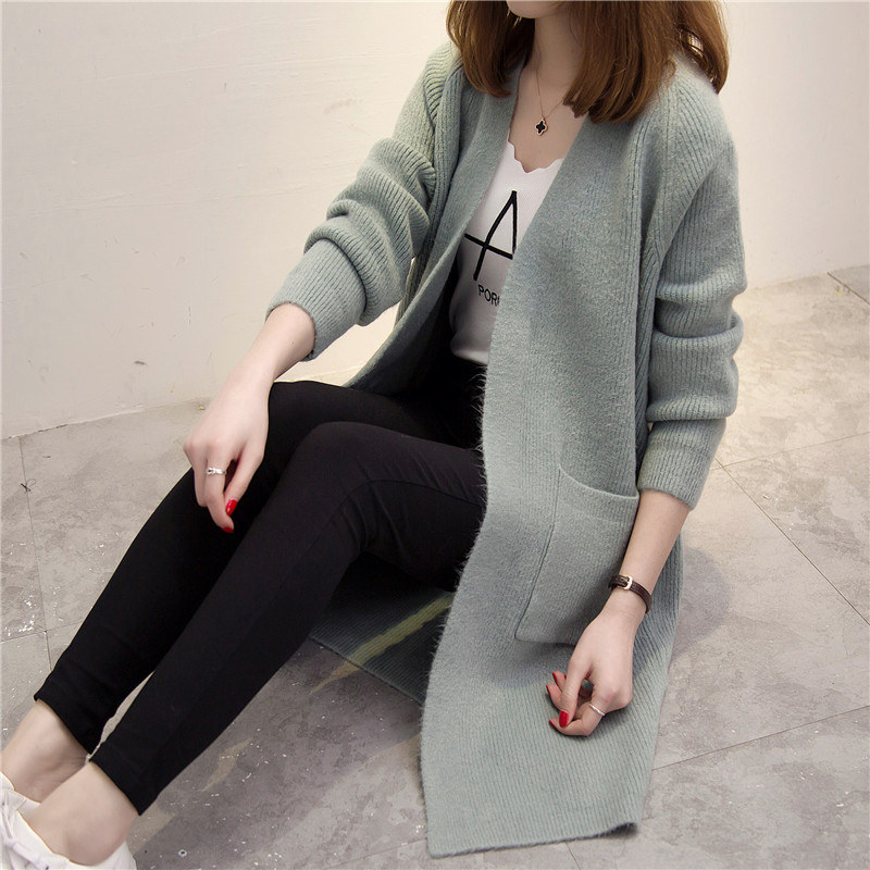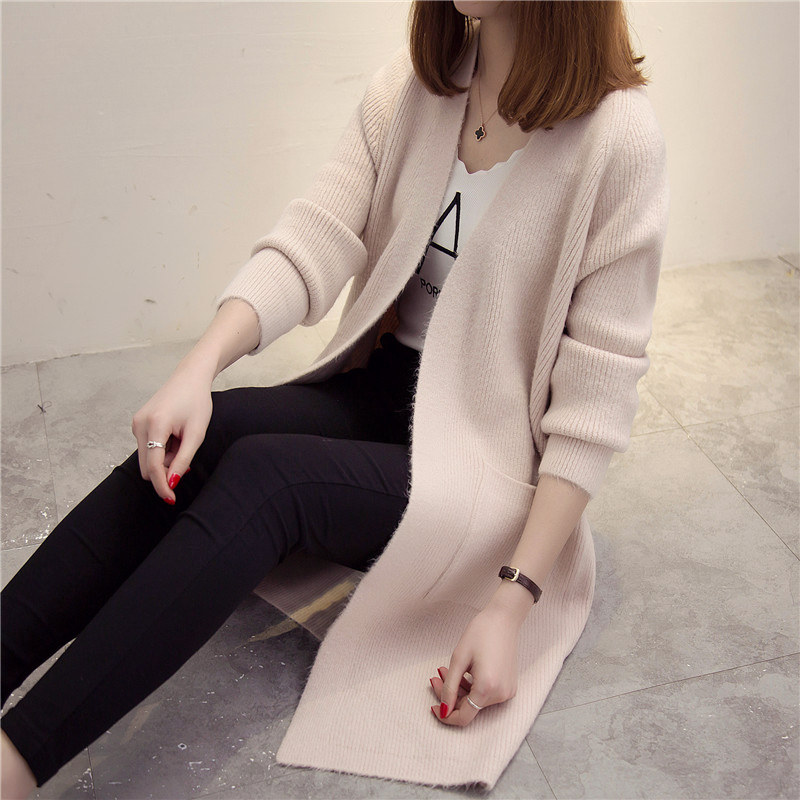 韓版寬松百搭長袖針織衫女開衫中長款毛衣外套女裝春裝新款潮