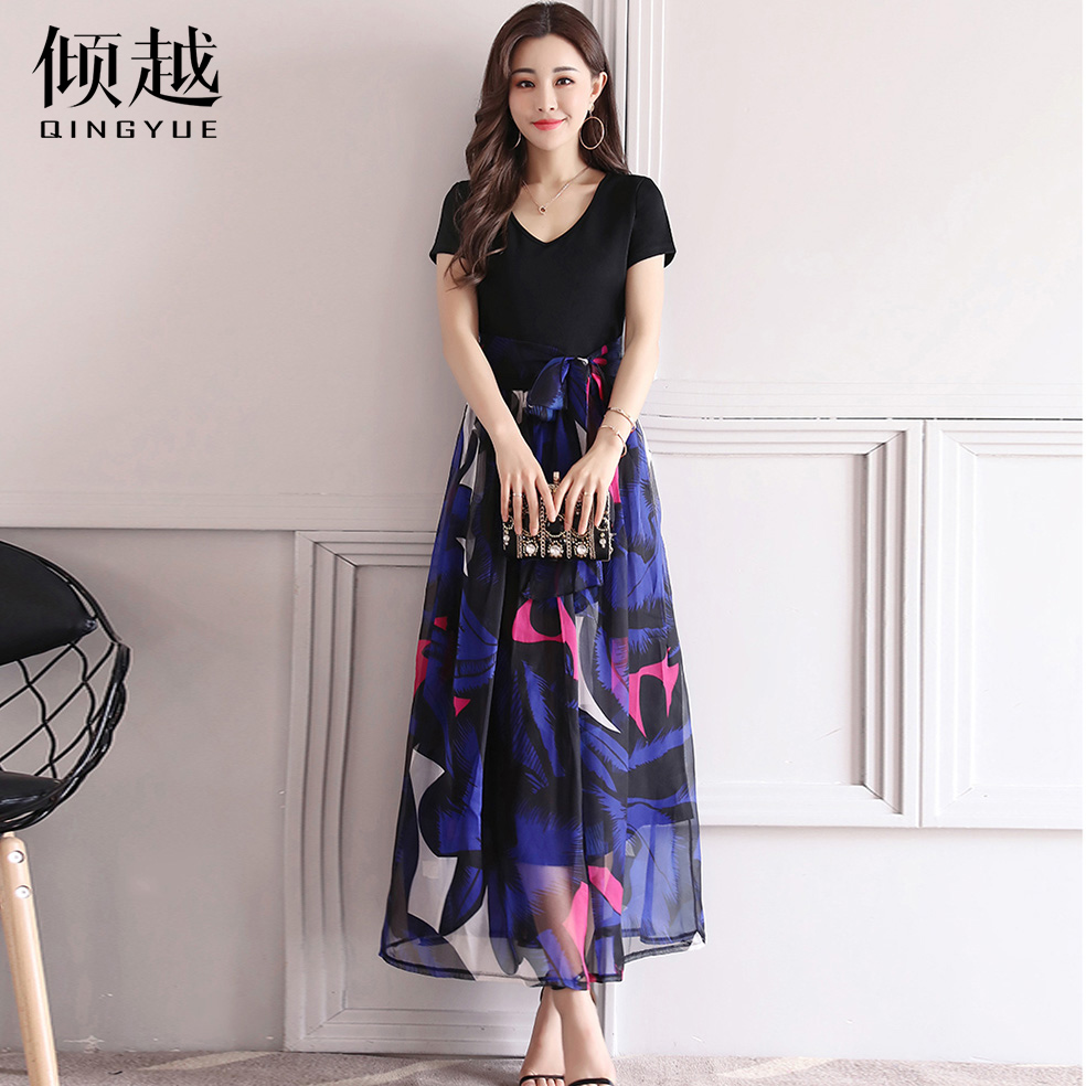 / 2017沙灘裙波西米亞長裙夏新款韓版時尚氣質短袖碎花雪紡連衣裙女