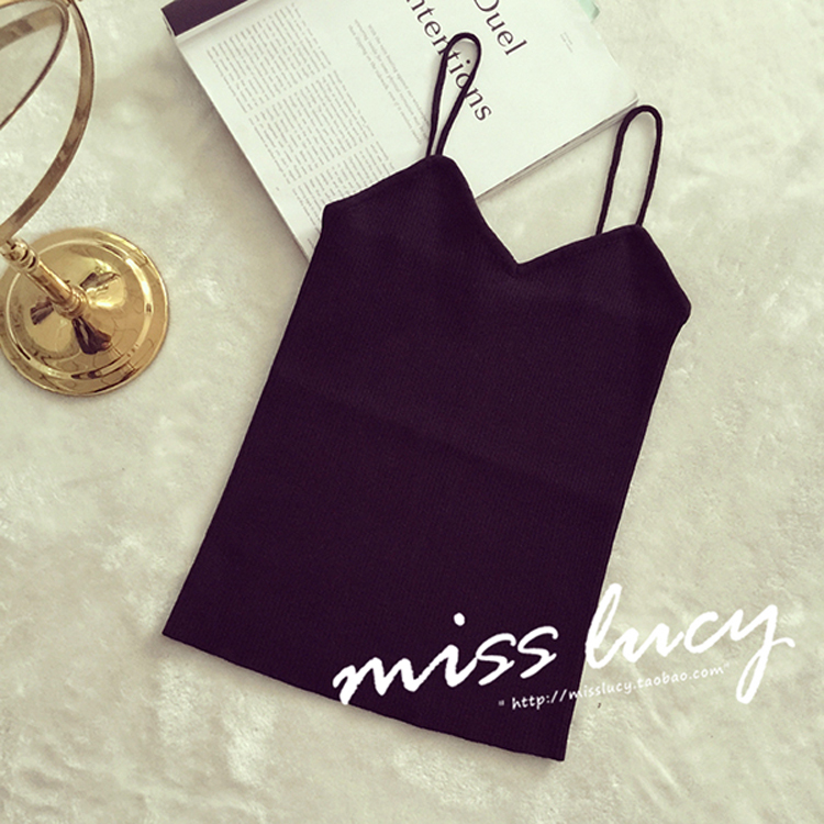 / 2017新款夏季韓版百搭純色性感V領打底針織吊帶背心女短款小吊帶