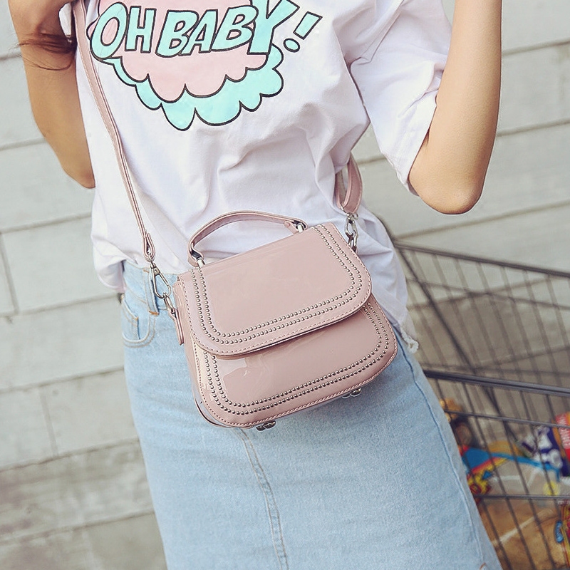 / 包包女新款潮韓版漆皮女包小包亮面鉚釘手提單肩包百搭斜挎包