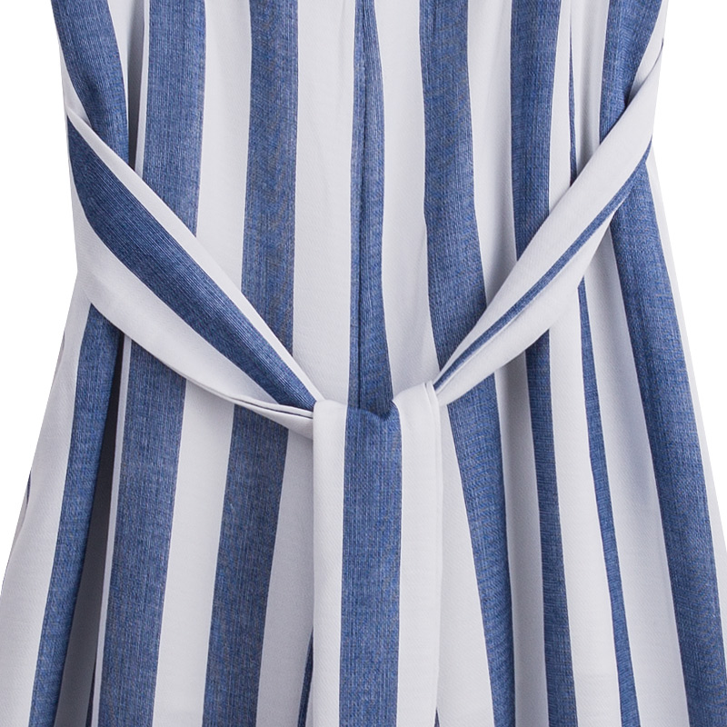 配腰帶豎條紋吊帶連體闊腿褲,氣質爆棚的一款連體褲