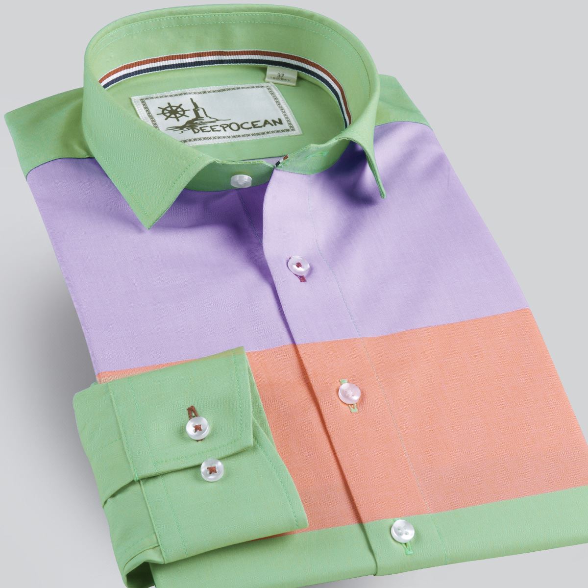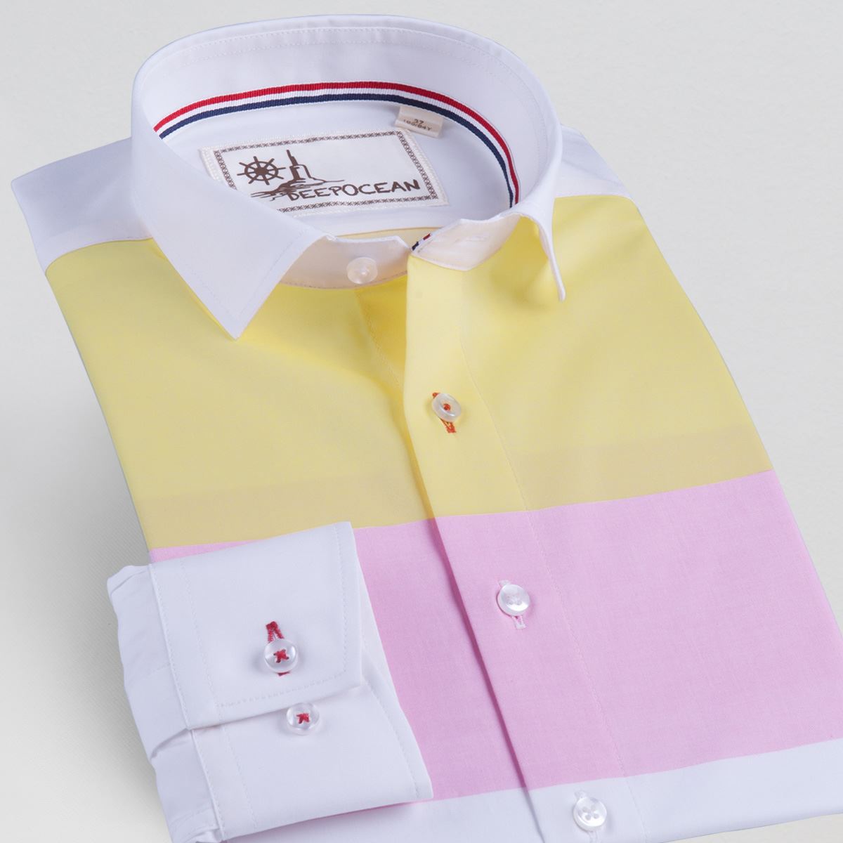 / 深海潮流拼色彩色男士長袖襯衫韓版修身襯衣純棉寸衫青年純棉男裝