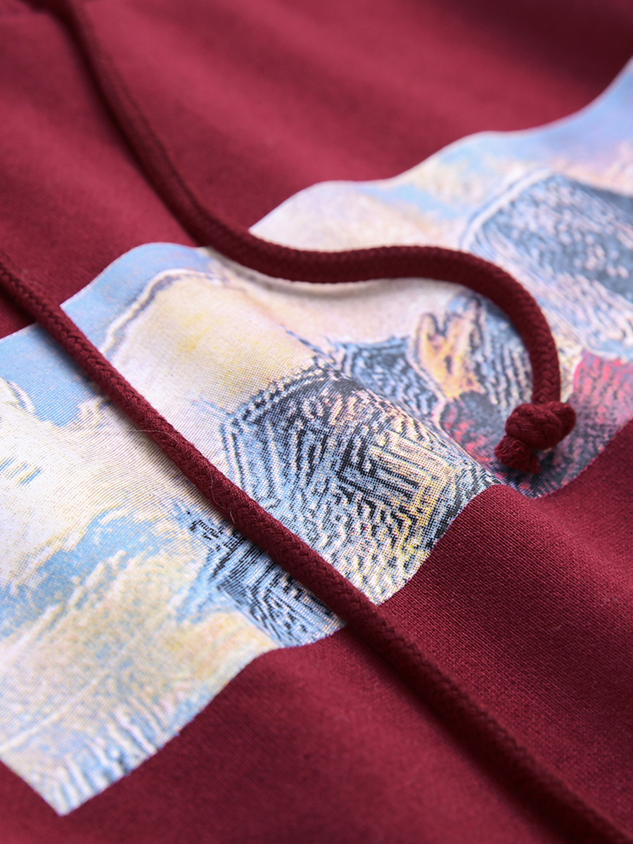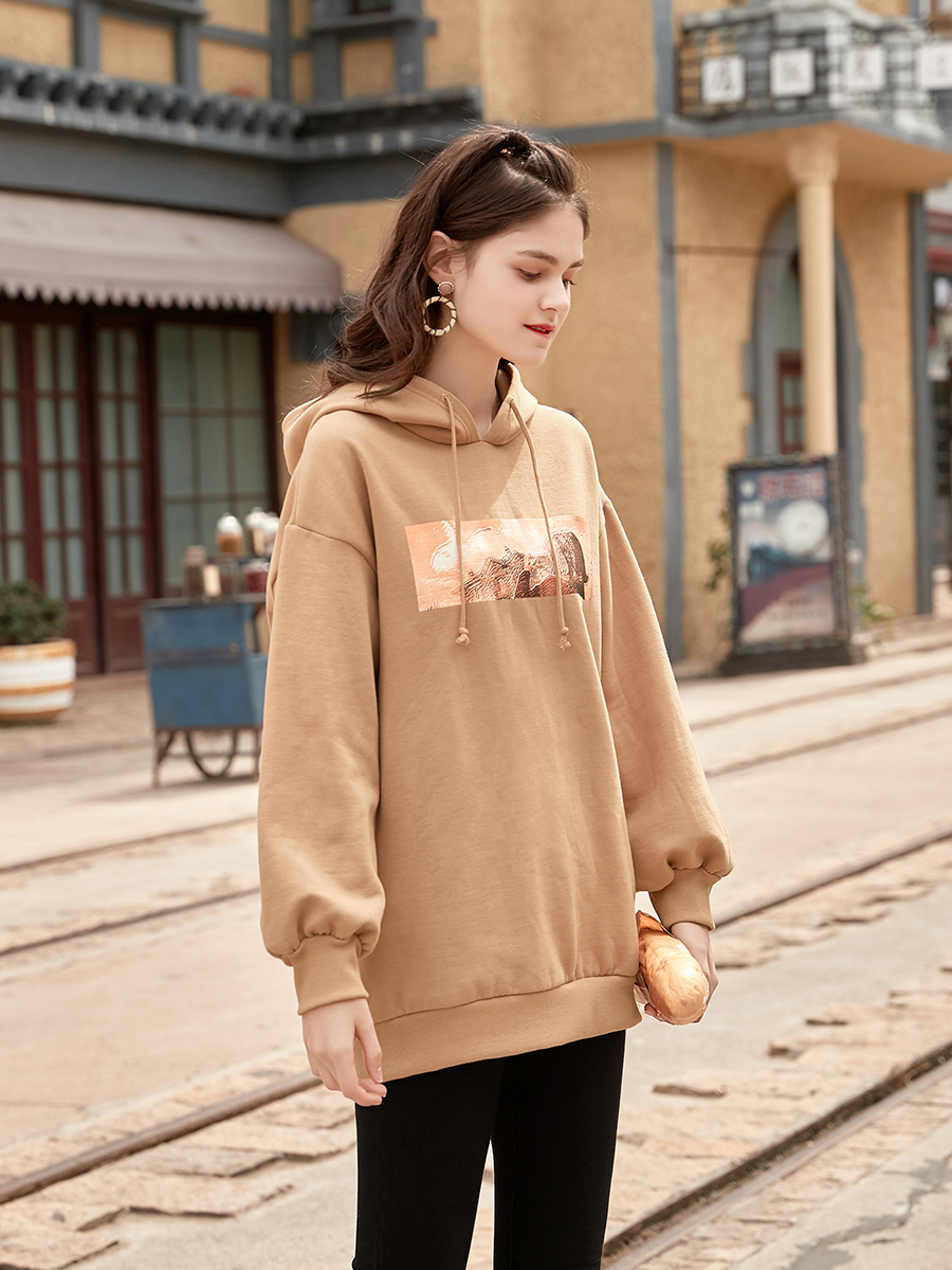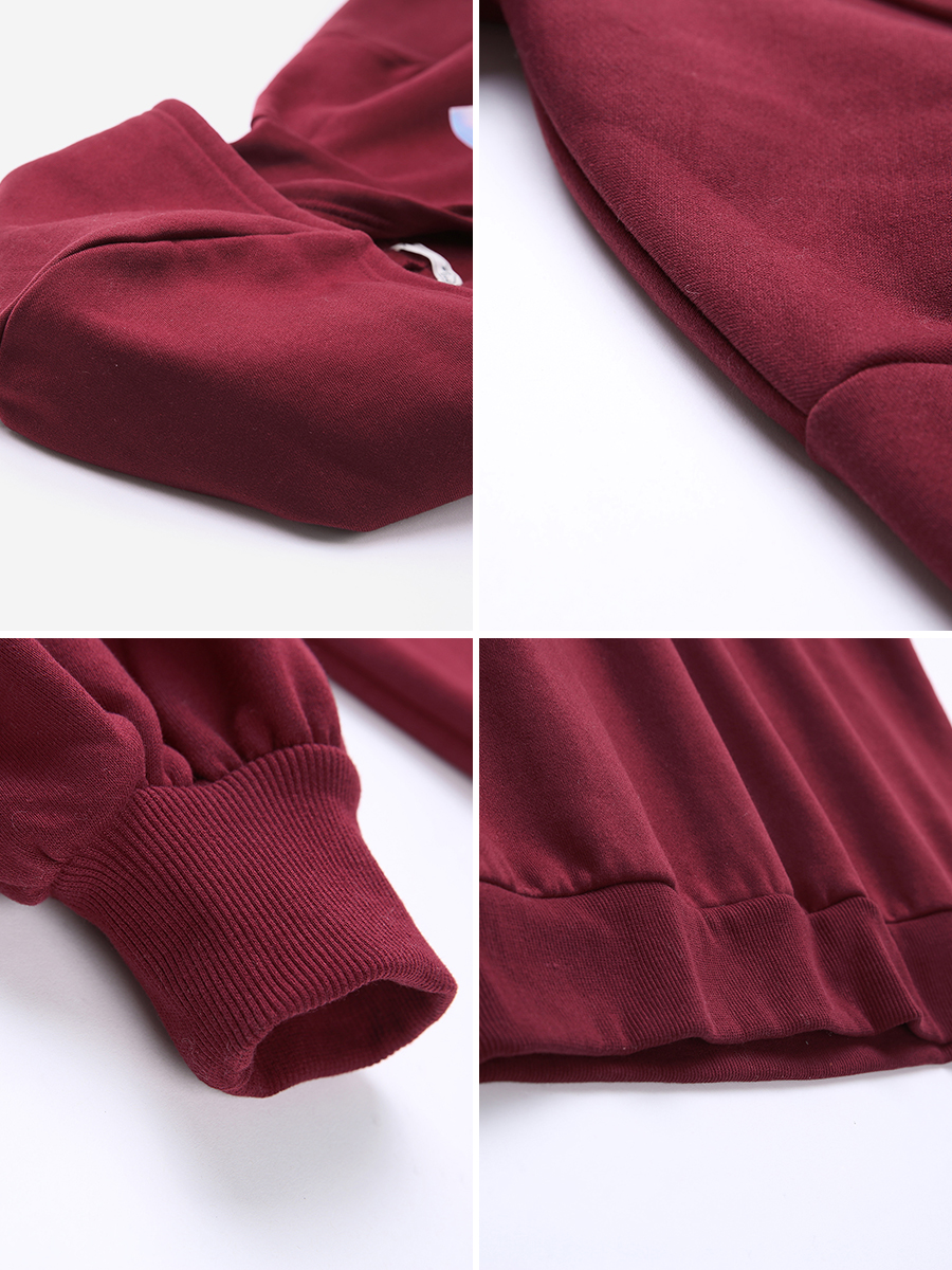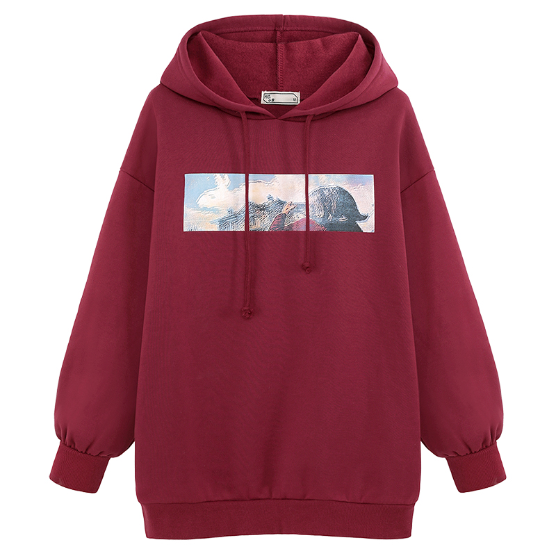 MG小象冬季酒紅色衛衣女休閑連帽外套2018新款寬松長袖套頭上衣潮