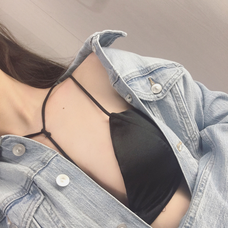 早春港味chic性感百搭小心機無鋼圈掛脖式內衣綢緞打底純色文胸女