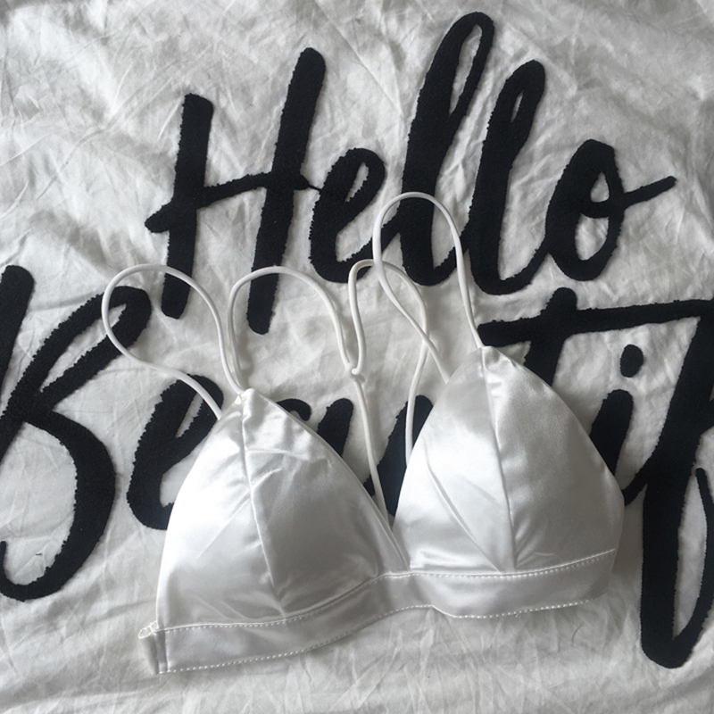 / 早春港味chic性感百搭小心機無鋼圈掛脖式內衣綢緞打底純色文胸女
