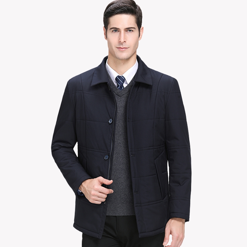 / 冬季花花公子正品中年男士棉服商務男爸爸裝翻領加厚保暖棉衣外套