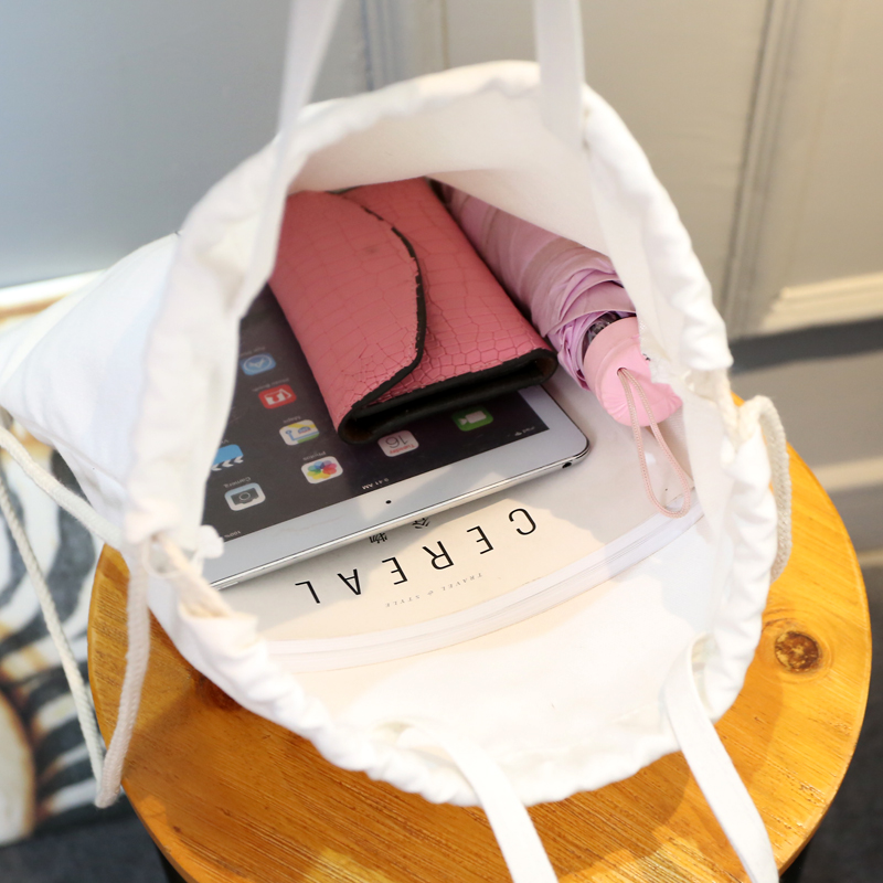 / 17森系小清新束口袋抽繩雙肩包 男女純色帆布背包帆布袋書包