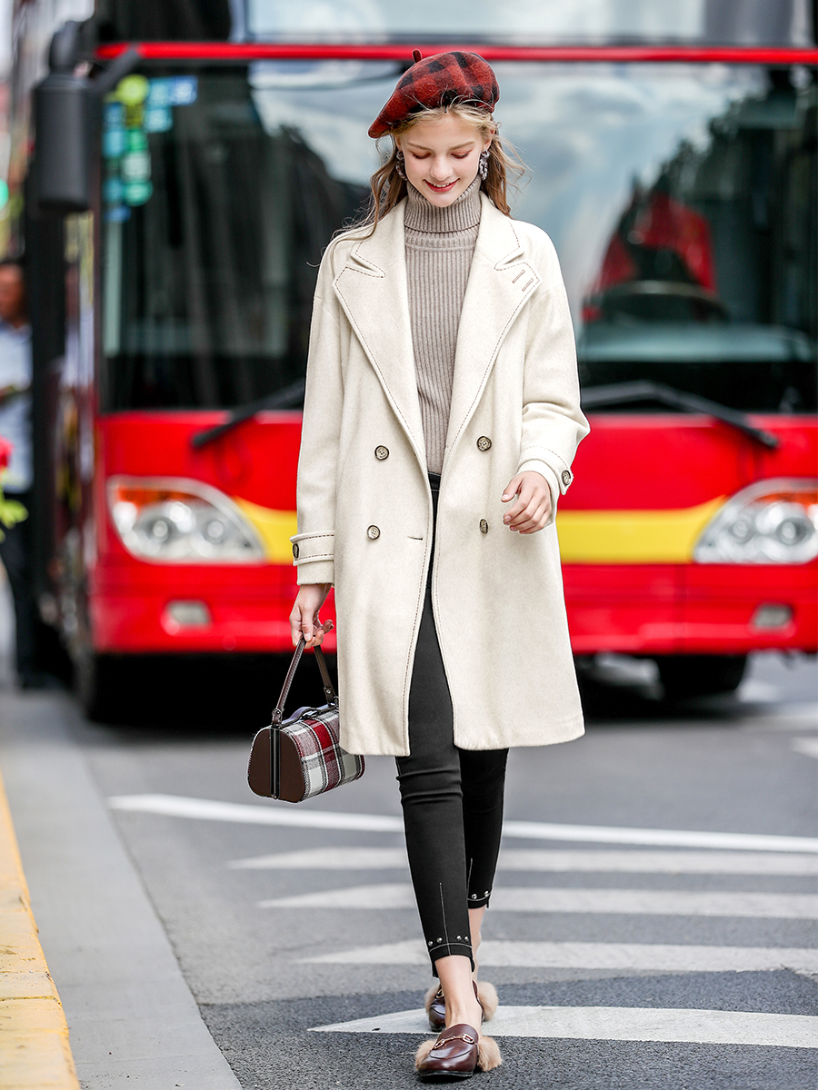 MG小象中長款過膝毛呢外套女寬松韓版冬季新款2018流行呢子大衣潮