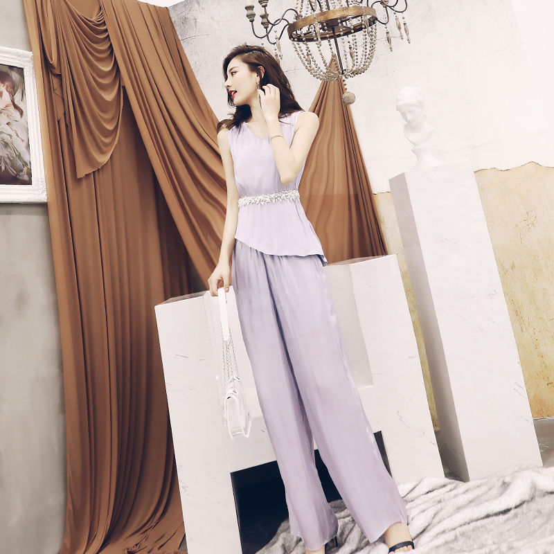 名媛氣質闊腿褲套裝女2018夏季新款無袖T恤上衣褲子時尚兩件套潮