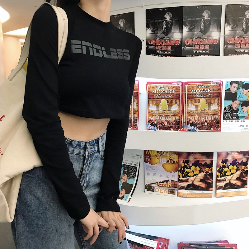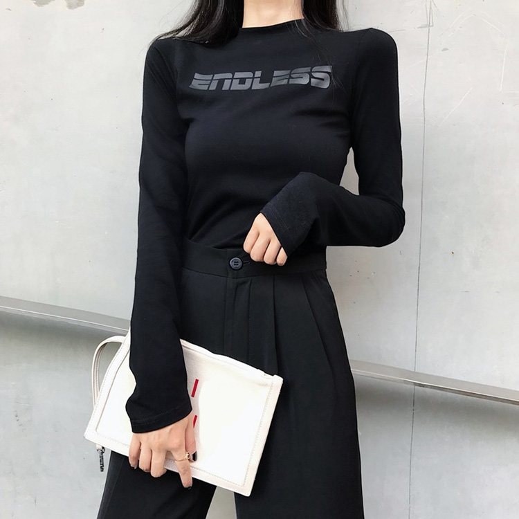 秋冬新款港風字母印花時尚百搭chic修身顯瘦長袖打底T恤衫閨蜜裝