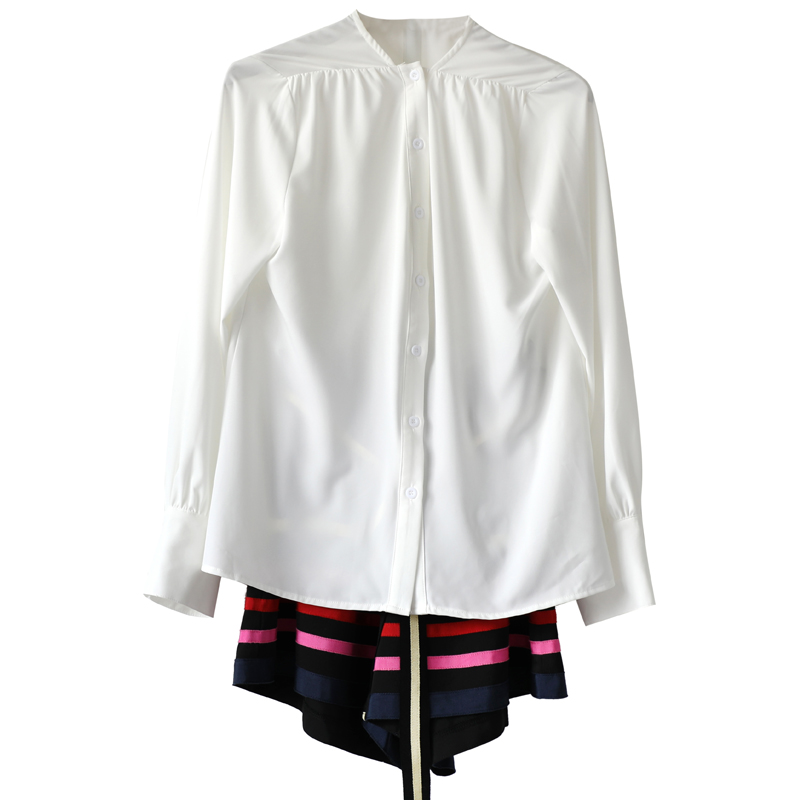 韓版小清新俏皮網紅套裝2018新款高腰闊腿短褲白色長袖襯衫兩件套