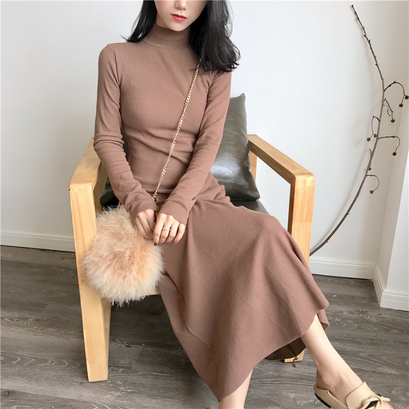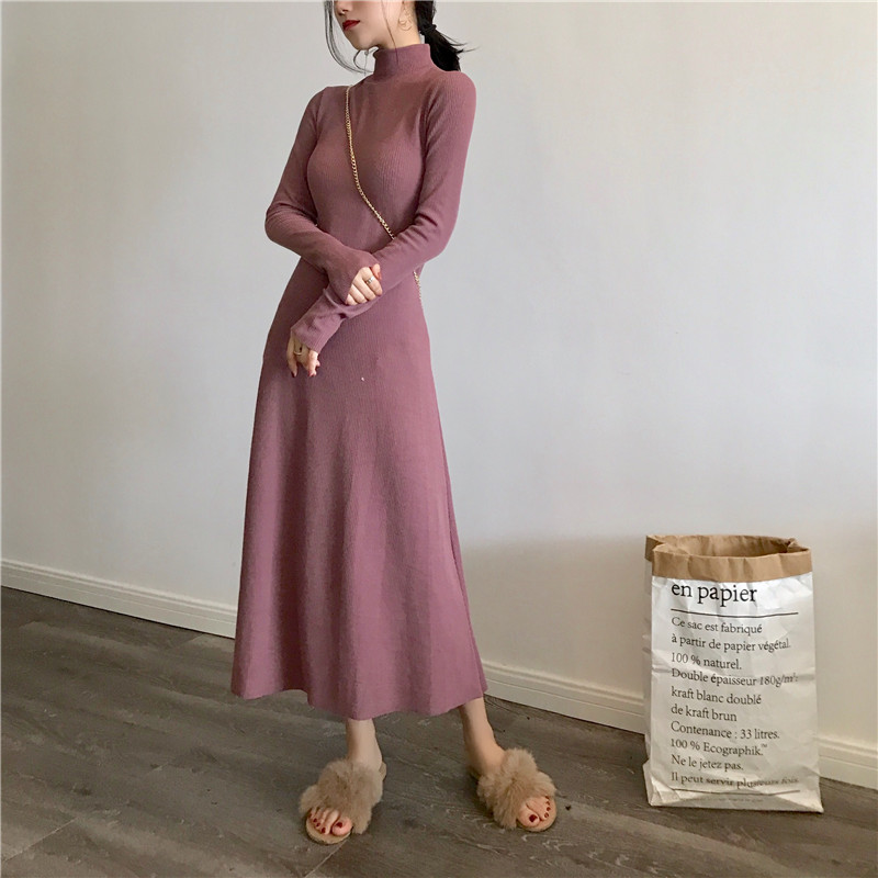 復古高領晚晚風新款秋季顯瘦chic長裙百搭修身收腰大擺A字連衣裙