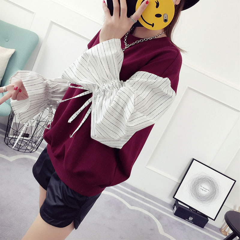 喇叭袖t恤女長袖假兩件上衣學生韓版百搭寬松春裝小衫夏裝體恤潮
