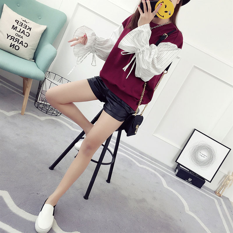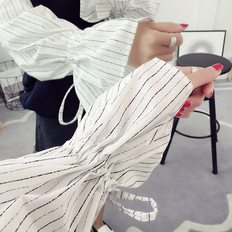 / 喇叭袖t恤女長袖假兩件上衣學生韓版百搭寬松春裝小衫夏裝體恤潮
