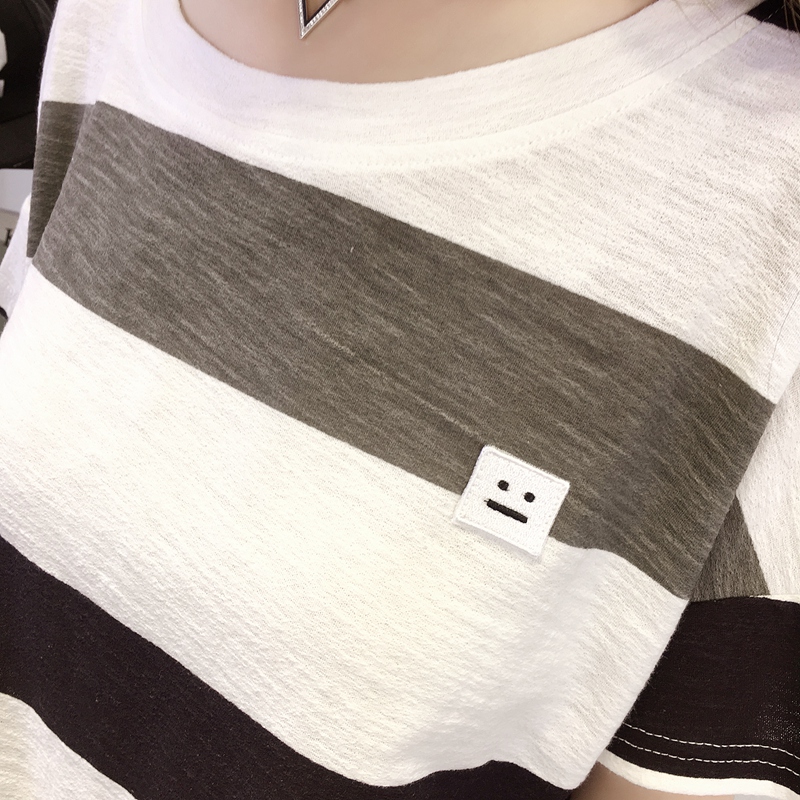 短袖女T恤條紋寬松韓版秋裝上衣半袖秋季體恤女裝夏裝新款潮