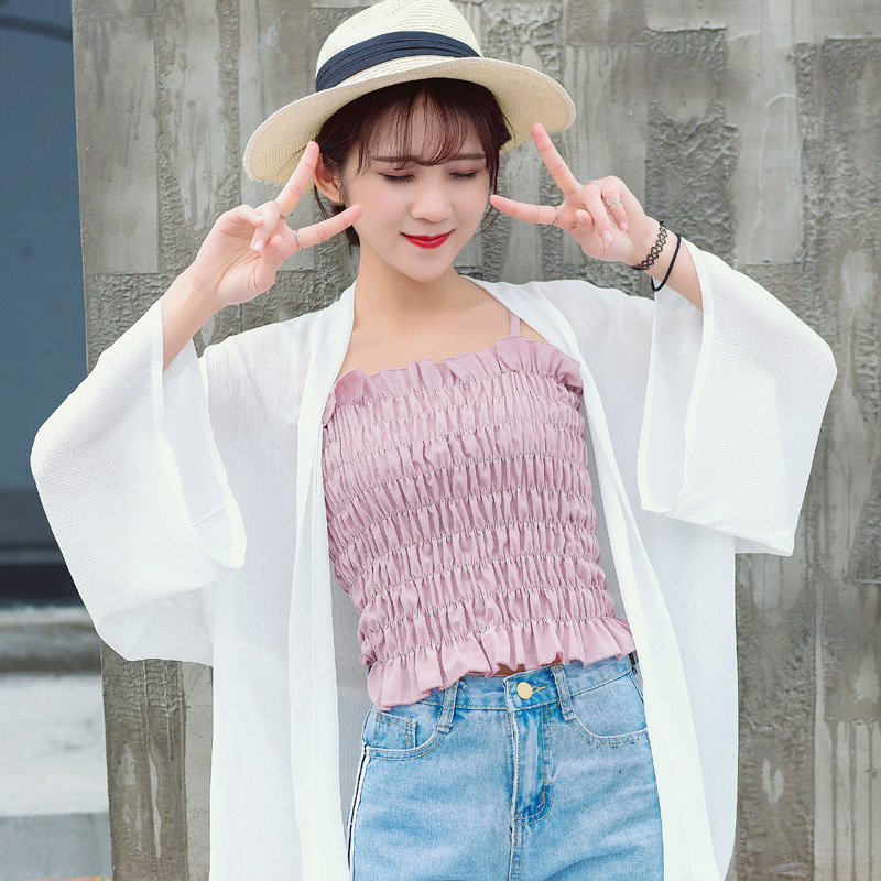 中長款的防曬衫,長度剛好,可以搭配褲裝內搭件小吊帶