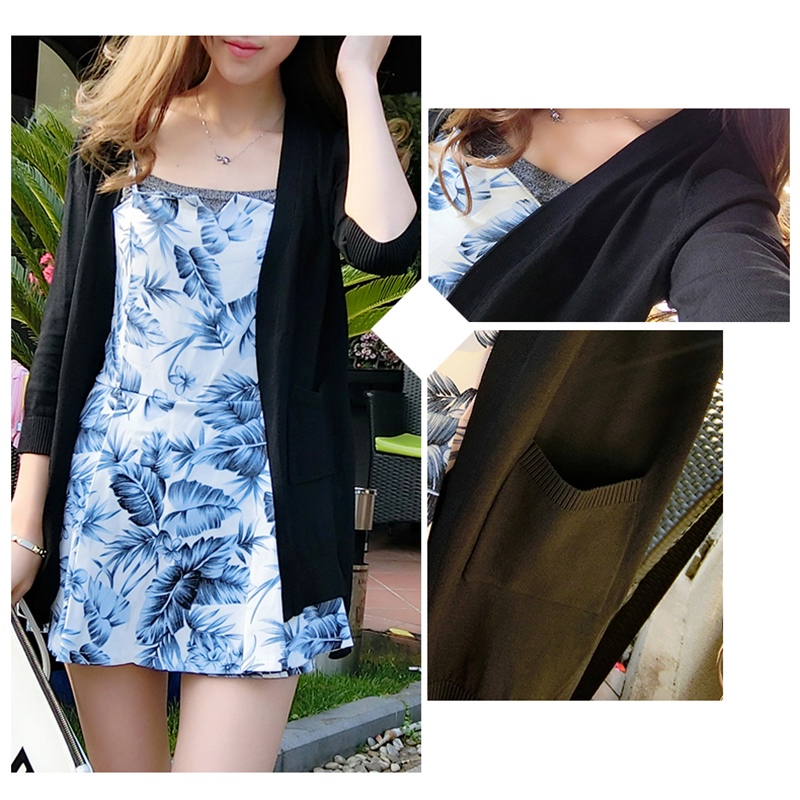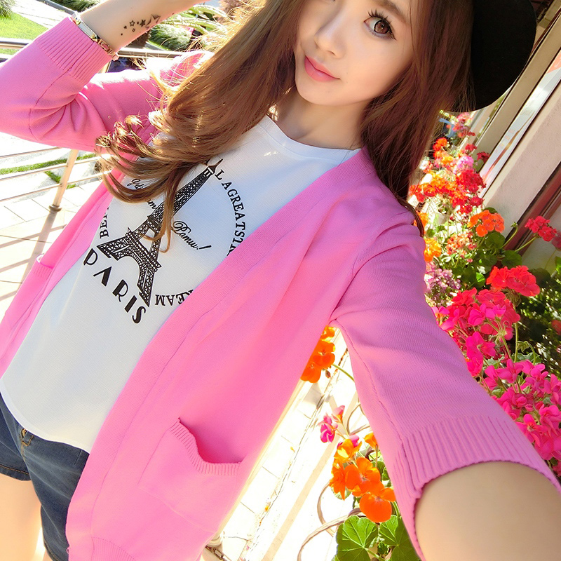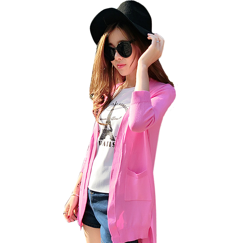 / 針織衫女開衫薄春夏中長款燕尾冰絲中袖針織開衫女空調衫防曬衫女