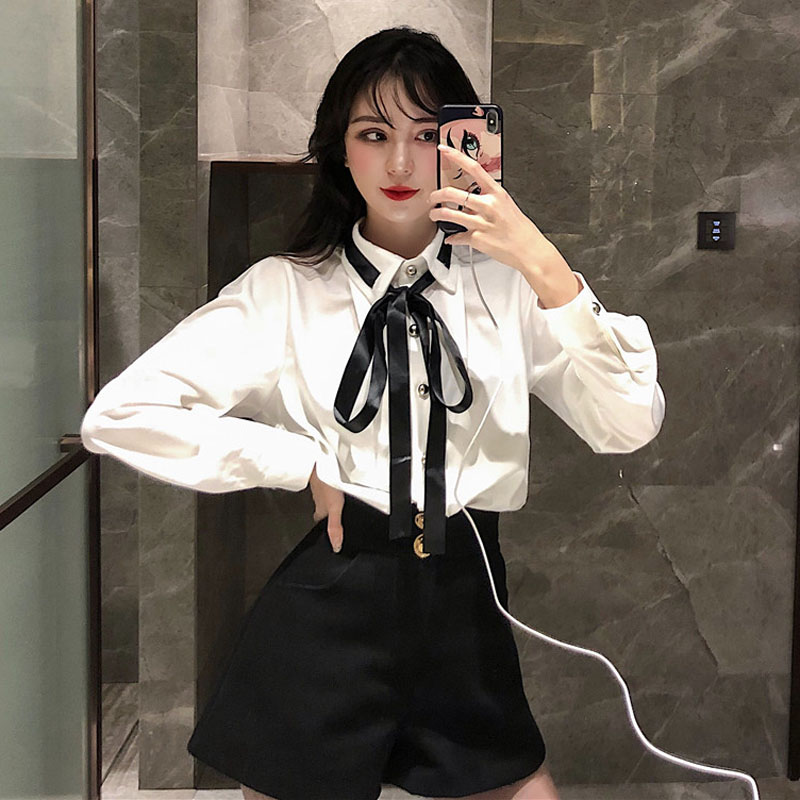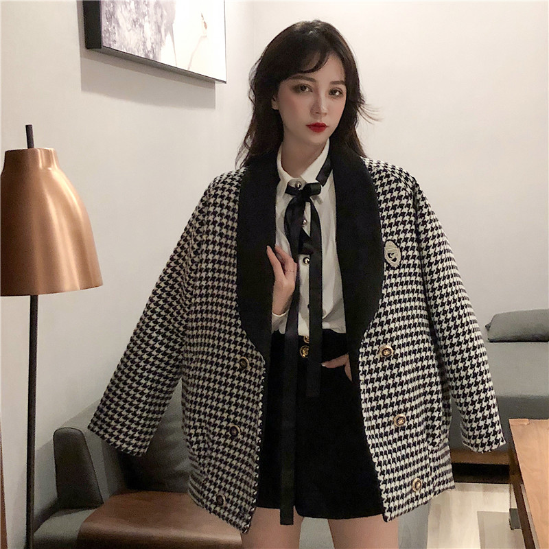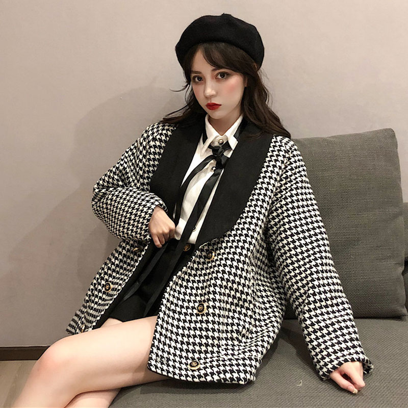 / 新款韓版斗篷千鳥格毛呢外套洋氣領帶襯衫排扣呢子短褲時尚套裝女