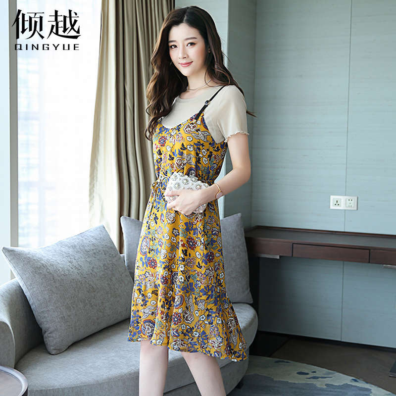 / 2017夏裝新款小香風女裝韓版時尚吊帶套裝裙女士碎花連衣裙兩件套