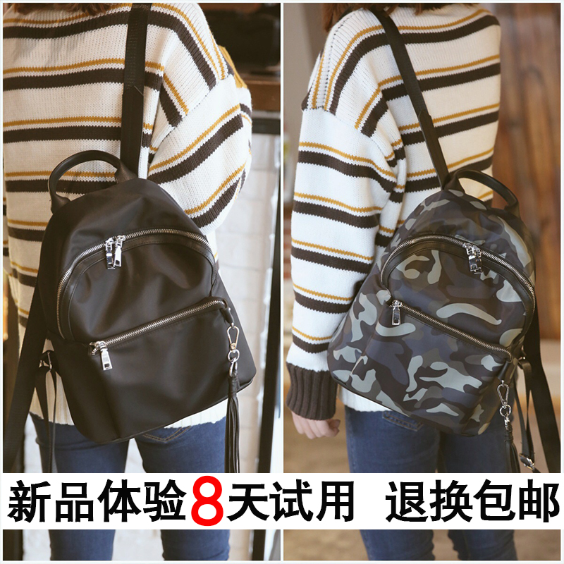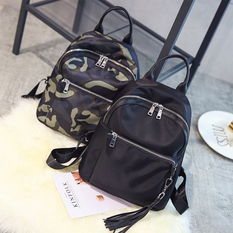/ 牛津紡雙肩包女新款日韓版時尚迷彩流蘇背包尼龍布旅行書包潮