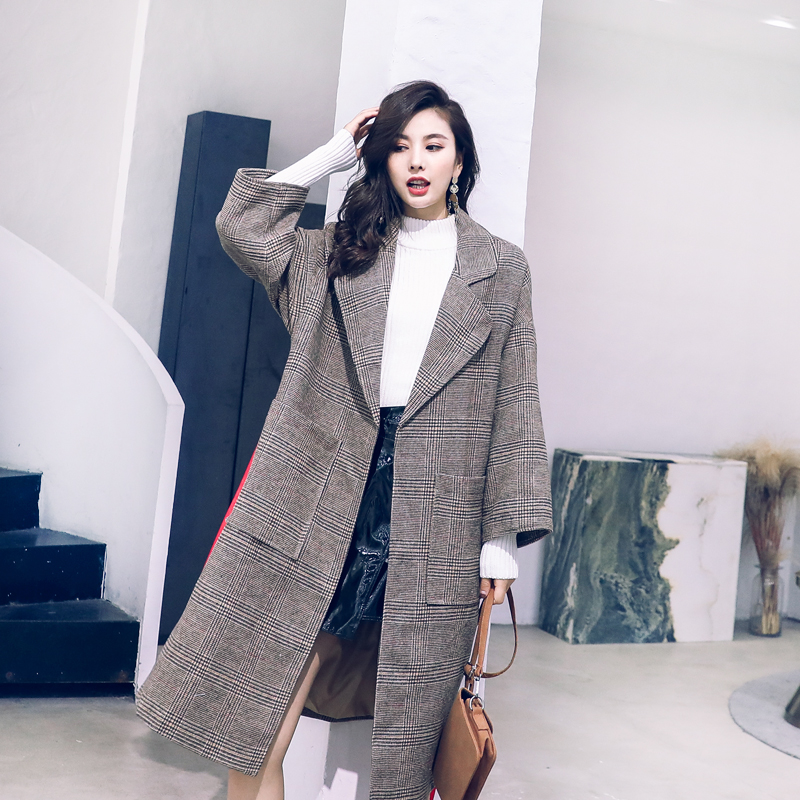 名媛氣質2018新款秋冬網紅大衣女中長款格子韓版西裝復古毛呢外套